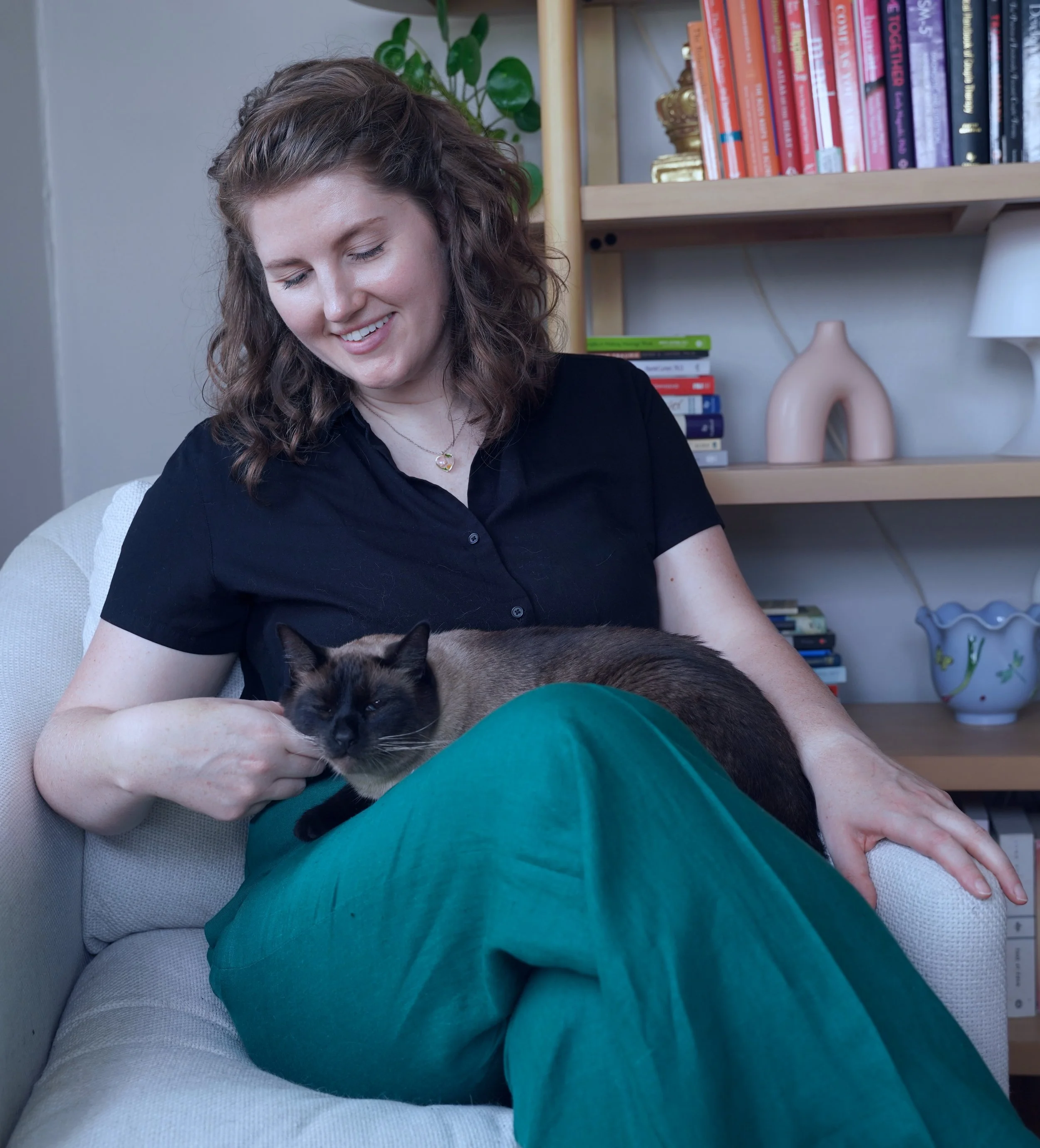 She also has a very handsome Siamese cat named Stanley Tucci (yes, like the actor), who she often takes for walks through their neighborhood.